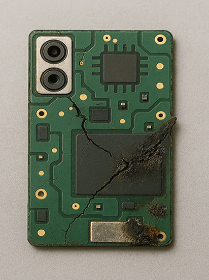 در برخی مواقع یکی از قطعات روی برد سریعاً داغ میشود که نشاندهنده خرابی مدار تغذیه است.